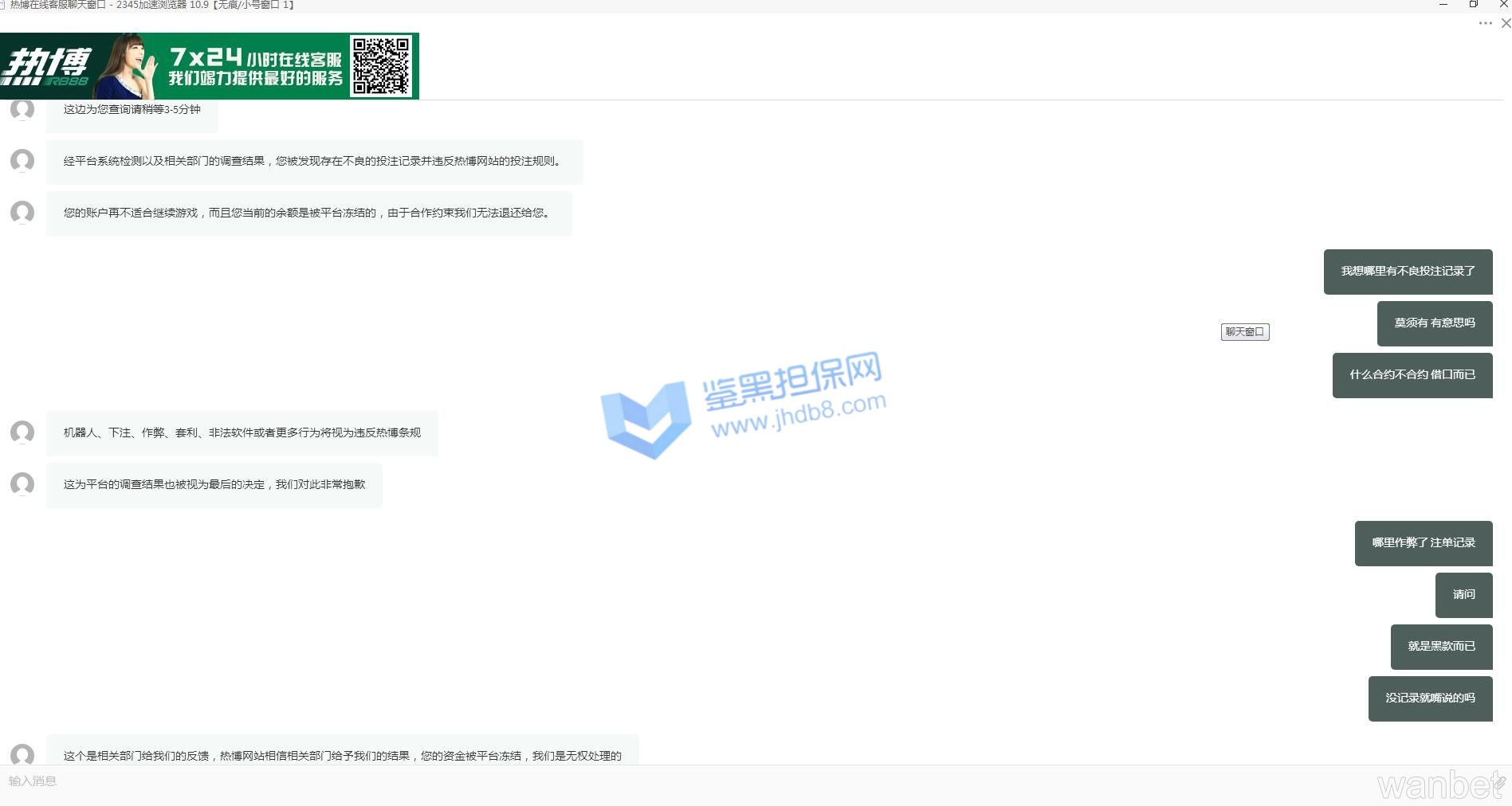 提款3868就不到账 一问说例行审核,我觉得绝对不是这么简单,一个公司稍微赢点就审核,我觉得多少有点问题,然后让提交身份证正反面、手持身份证、户口本,没有办法 虽然不愿意,但是我只能当时就立即提供了,提供后说不清晰 我继续拍,我说实在不行 要不要把社保卡什么的都发给你来证明一下自己(真是让人头疼 反正提供了户口本 翻户口本的时候看到其他东西 想想不如多给你提供一些东西 可好?),反正后来又拍了两次后 说资料合格全了,却说还要等十天(七个工作日),我就搞不懂了 你要的是审核什么,本来就是要提供的是资料 已经全了给你,也说资料全了,却还要等那么久,这就是借故拖延的一种,其实很多人接收不了审核,因为属于公司实力和底气的一种,没有办法情况下的审核可以接受,因为正规TOUZHU,但是审核效率上能不能加强呢?何况很多公司根本不谈节假日 如大公司365九州等人家不乱审核,即使处理重要问题也就是一两个工作日。 不出所料卡完审核日期 钱连本金全部被黑,无耻至极! 热博该公司多网站搞广告 曾经因为走地皇名声搞坏了 改名热博 曾经广告主打专业体育为主,该后台老板旗下还有同L城、乐T堂、bi威、竞BO 都是,现在经常审核有黑款行为,在热博存款二百 提款3868元被黑。只玩了体育 赢点就被审核,说我对打套利,我搞不懂了 如何套利 另外问违规注单,让他们提供却没有,只说违规 就一句话。 知道正常黑款公司从开始就是这个步骤 先让你提供身份资料 然后提供了 卡完审核日期(因为根本决心黑款拖完时间再说)然后就黑款。这家比之前的UC体育还无耻 UC体育黑款还能退本金 这家连本带利全部黑了。真正土庄,还有这个系统大家要注意 之前口碑还可以的几家都已经有黑款行为了,比如B威,刚开始还信誉,后来听说被海南工作室搞惨了,然后现在就一直有审核黑款情况,包括乐T堂、同L城 竞博都是如此,一样的审核套路和黑钱行为,大家都要留心。而且该系列包括热博这些公司在玩BO联合该论坛骗会员 多次搞活动,投诉贴较多,该站管理根本不管会员利益,只知道收广告费,还黑会员 大家都要明智。
