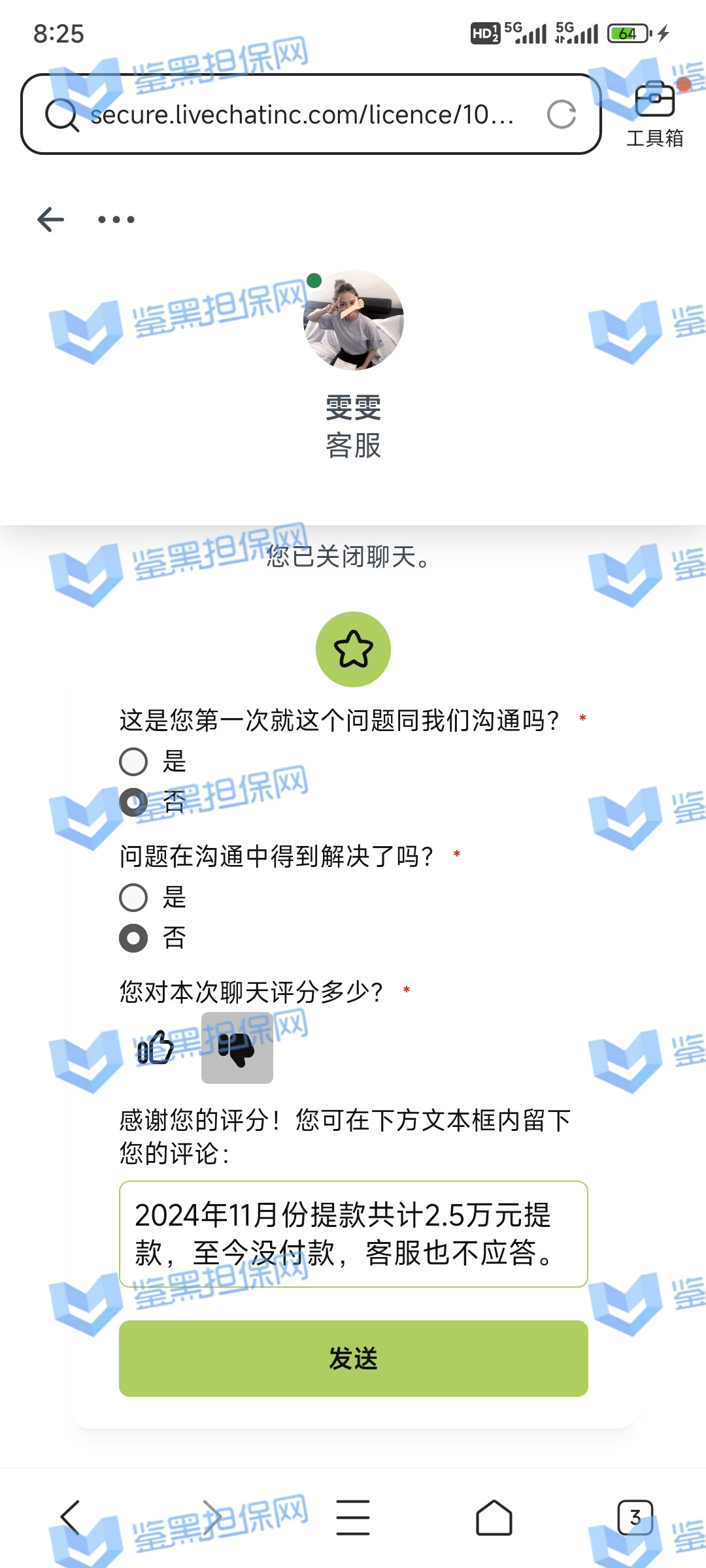 4.用户提交维权需为本人提交,若代替让人发布维权鉴黑担保网将拒绝受理;