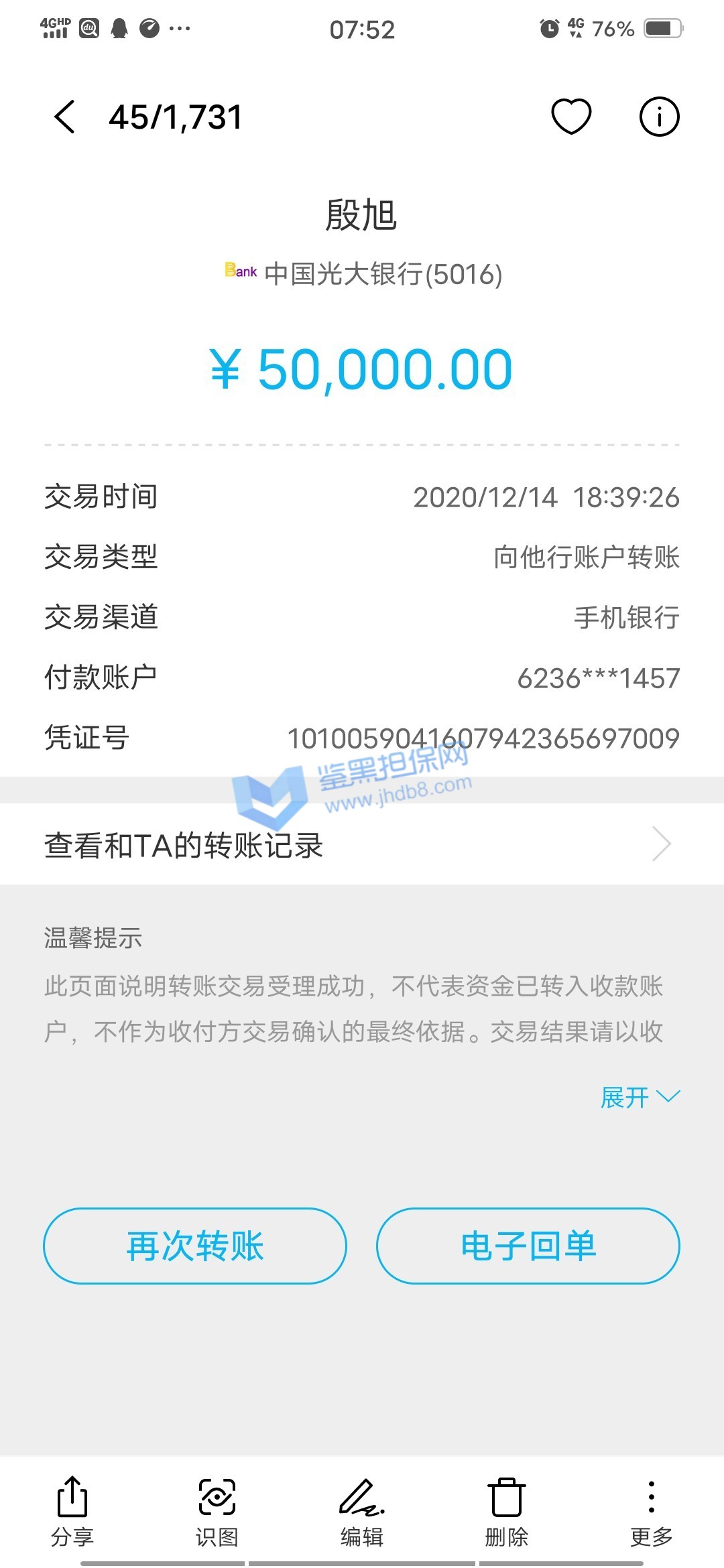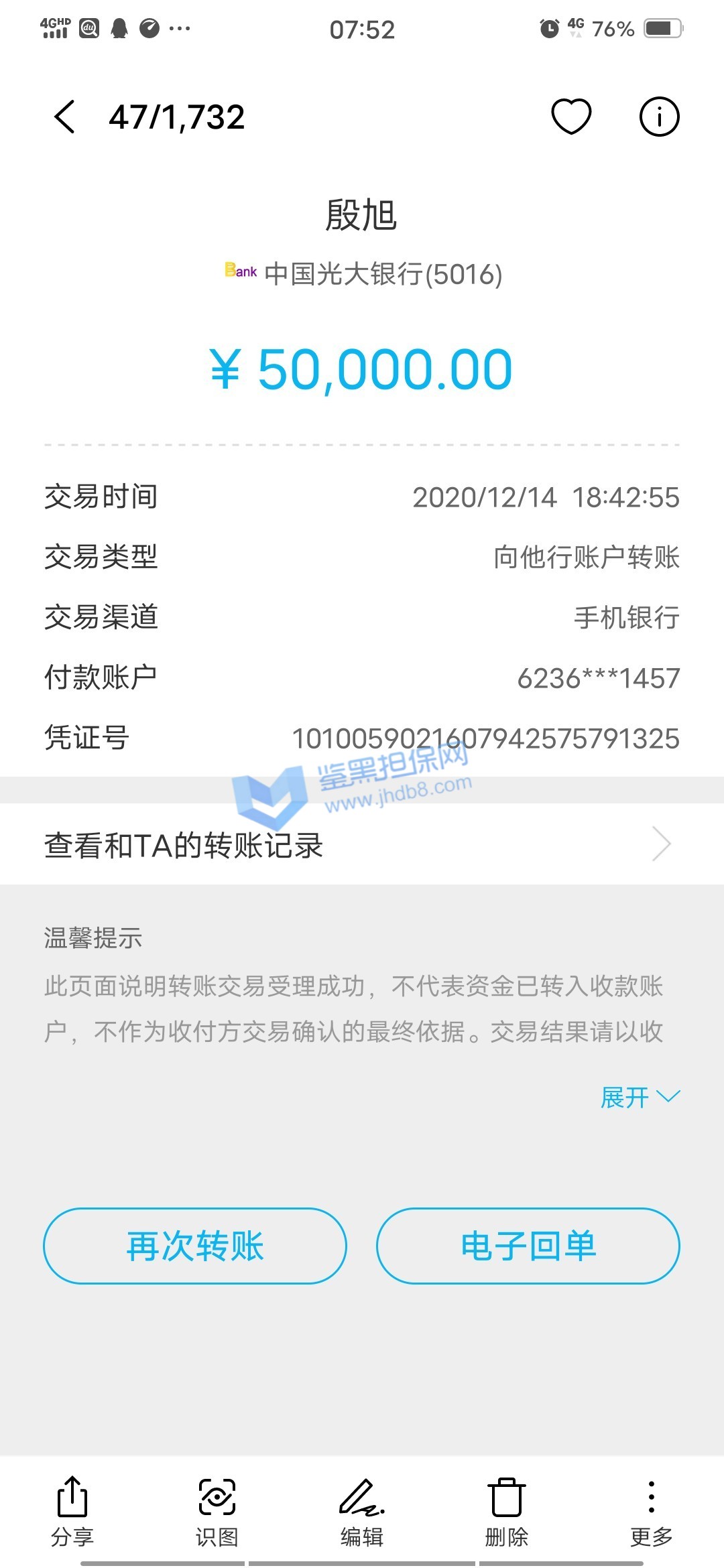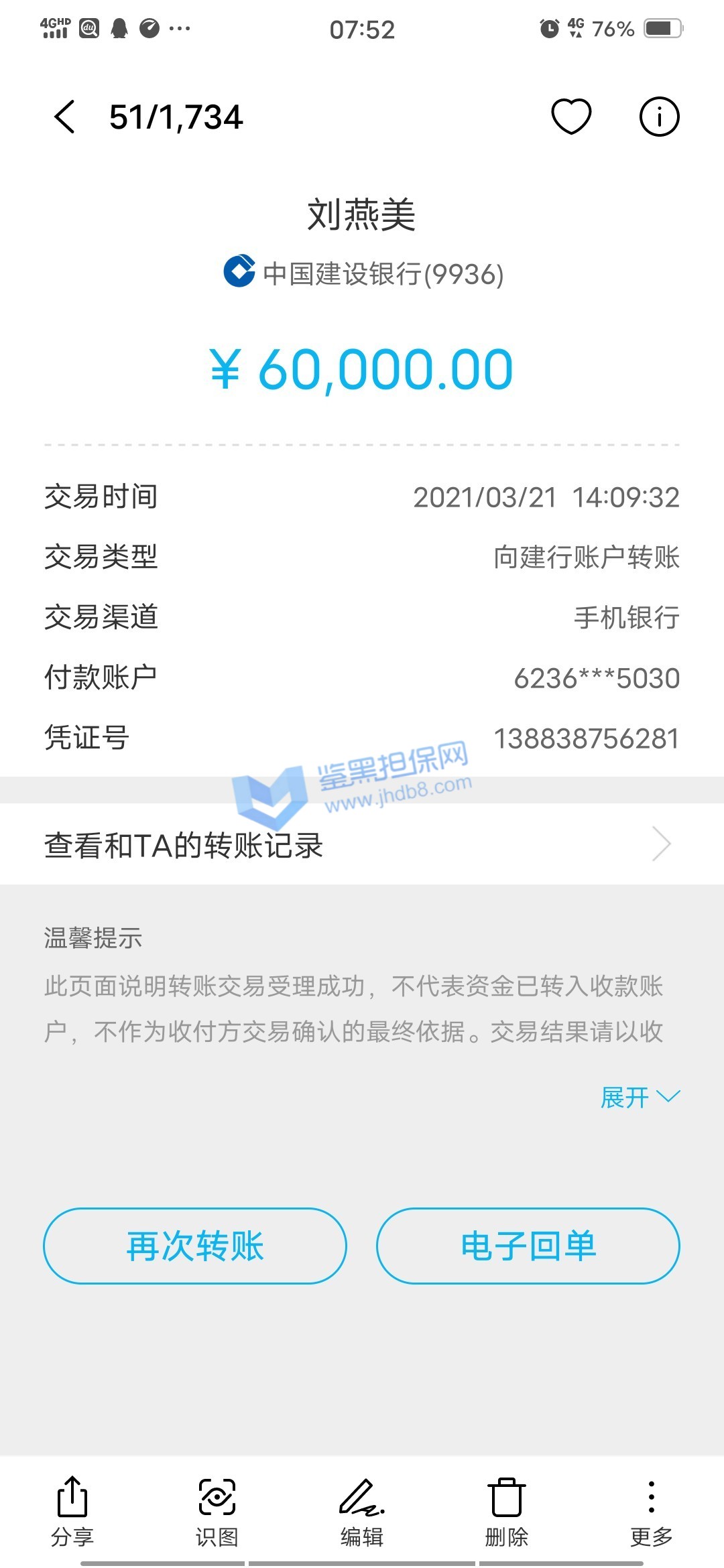 2.已受理的维权无法删除、撤销,鉴黑担保网将对维权事实进行核查验证并公开透明全过程,以保障维权双方的权益;