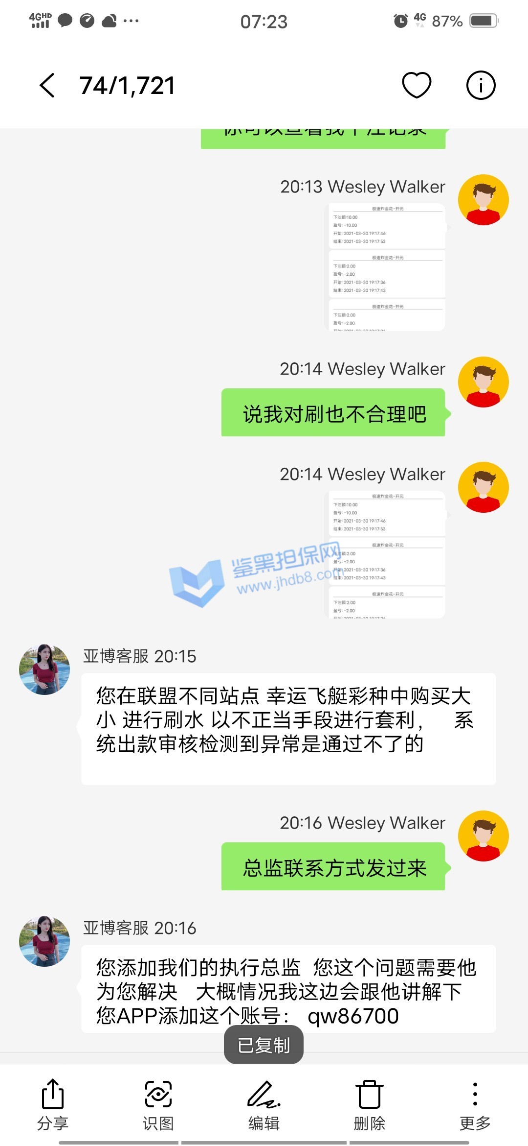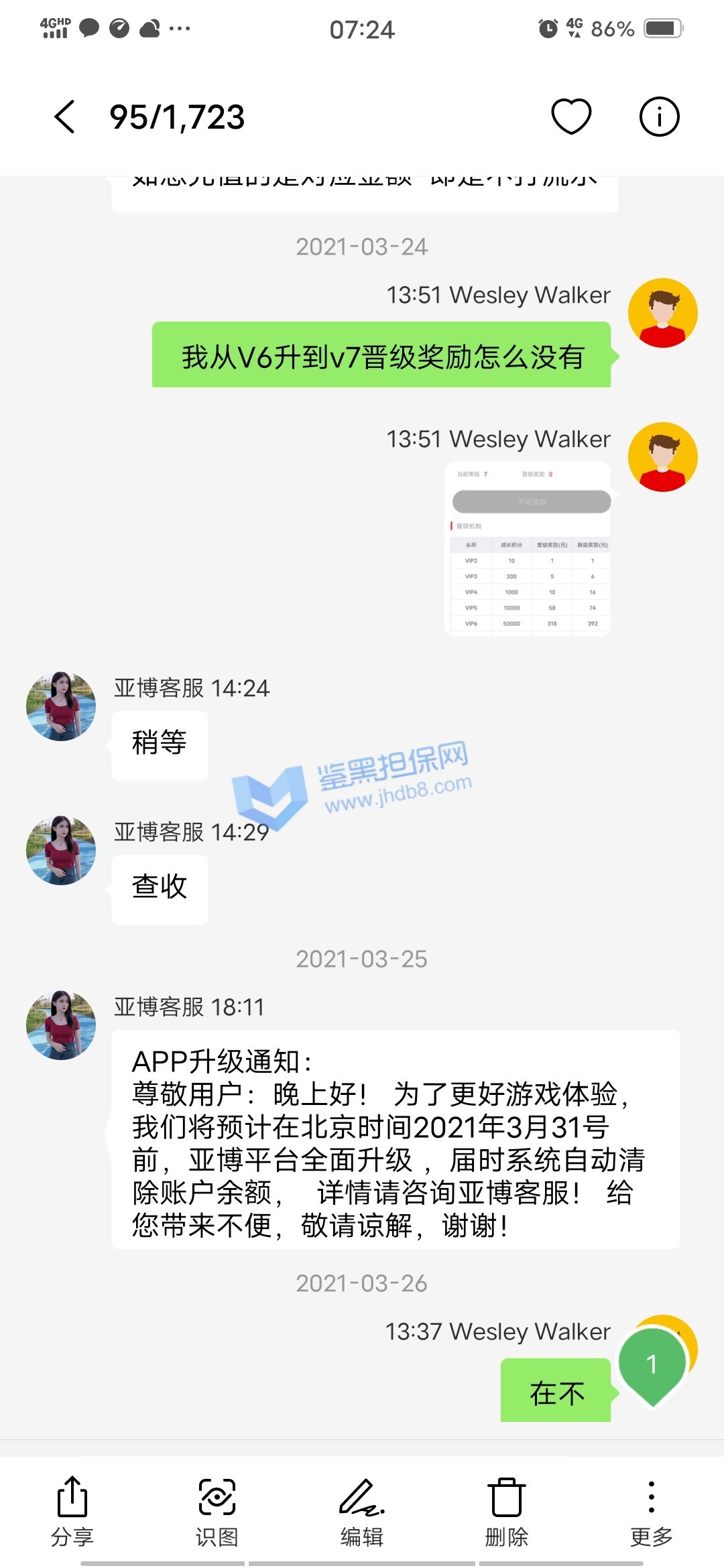 4.用户提交维权需为本人提交,若代替让人发布维权鉴黑担保网将拒绝受理;