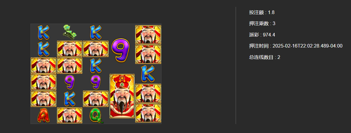 4、奖金乘数将用于确定最终中奖金额(投注额 x 中奖倍数),最高投注限额为¥22元。投注越大就有越高的机会在单次旋转中赢得高达¥11,000元的奖金!如果投注超过¥22,则超过限额的任何金额将不计入奖金计算。