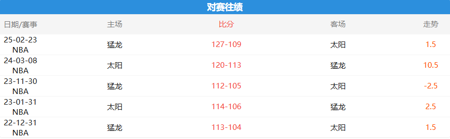 从历史交锋来看,两队过去五次交手,猛龙取得3胜2负的微弱优势。太阳虽然整体实力稍强,但猛龙的团队篮球和内线优势也不容小觑。此外,猛龙的客场战绩虽然不佳,但球队在面对强队时往往能打出超水平表现。